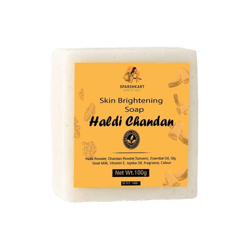 Experience ancient skincare goodness with SparshKart Haldi Chandan Soap, enriched with turmeric and sandalwood—two of Ayurveda’s most powerful skin-enhancing ingredients.